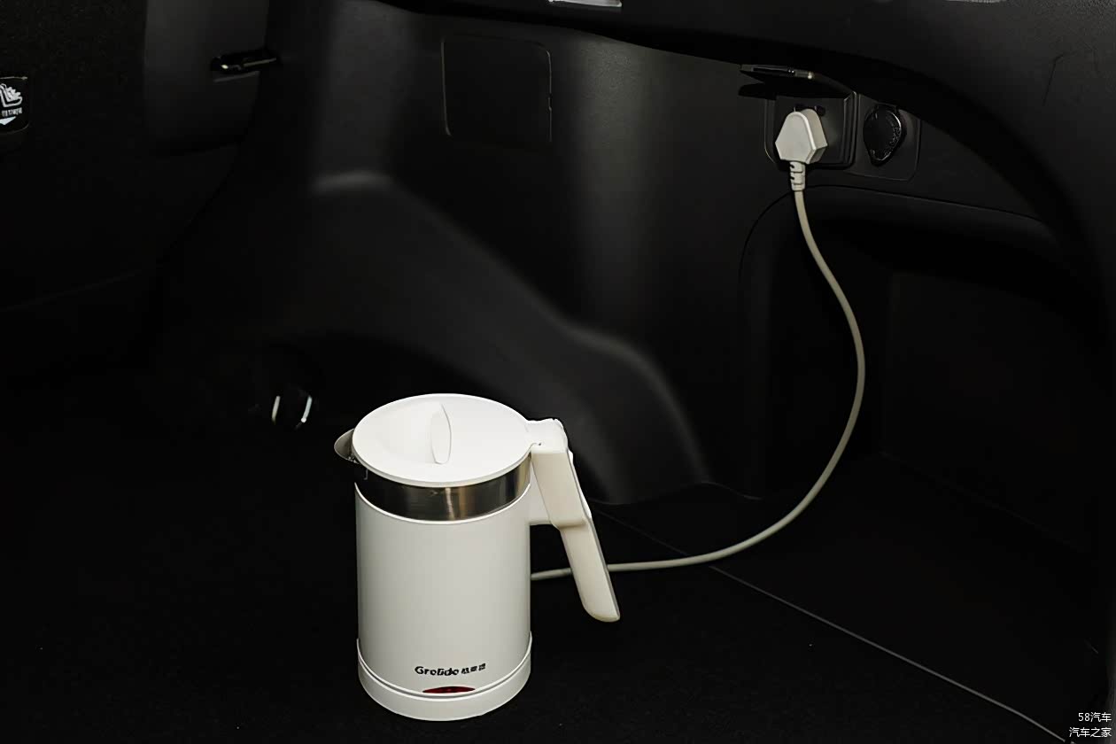 打开后备箱,顶配车型独有的“放电功能”,可以对外供电:220V电源,可以负载功率1500W的供电设备。可变身移动电站,露营、野炊、户外休闲时候非常方便,车上的电池在满电状态下,可以用1000W的电水壶烧开188壶水,可以用600W电饭煲煮32煲饭,可以让800W电磁炉工作12小时,有点太方便。在遇到停电或者灾害等紧急情况,威兰达高性能版还能提供应急电源使用。