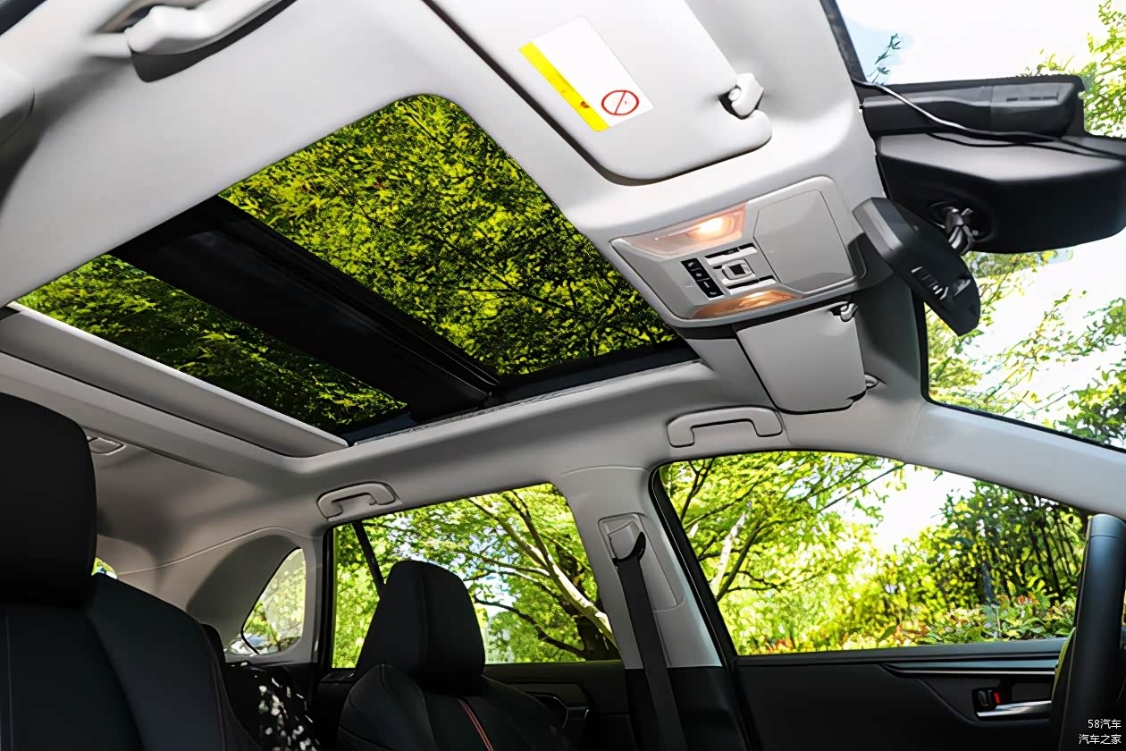 只有顶配车型才独有的行李架、以及可开启的两段式全景天窗,通过这个,就能分辨出您开的是顶配车型,还是其他车型。