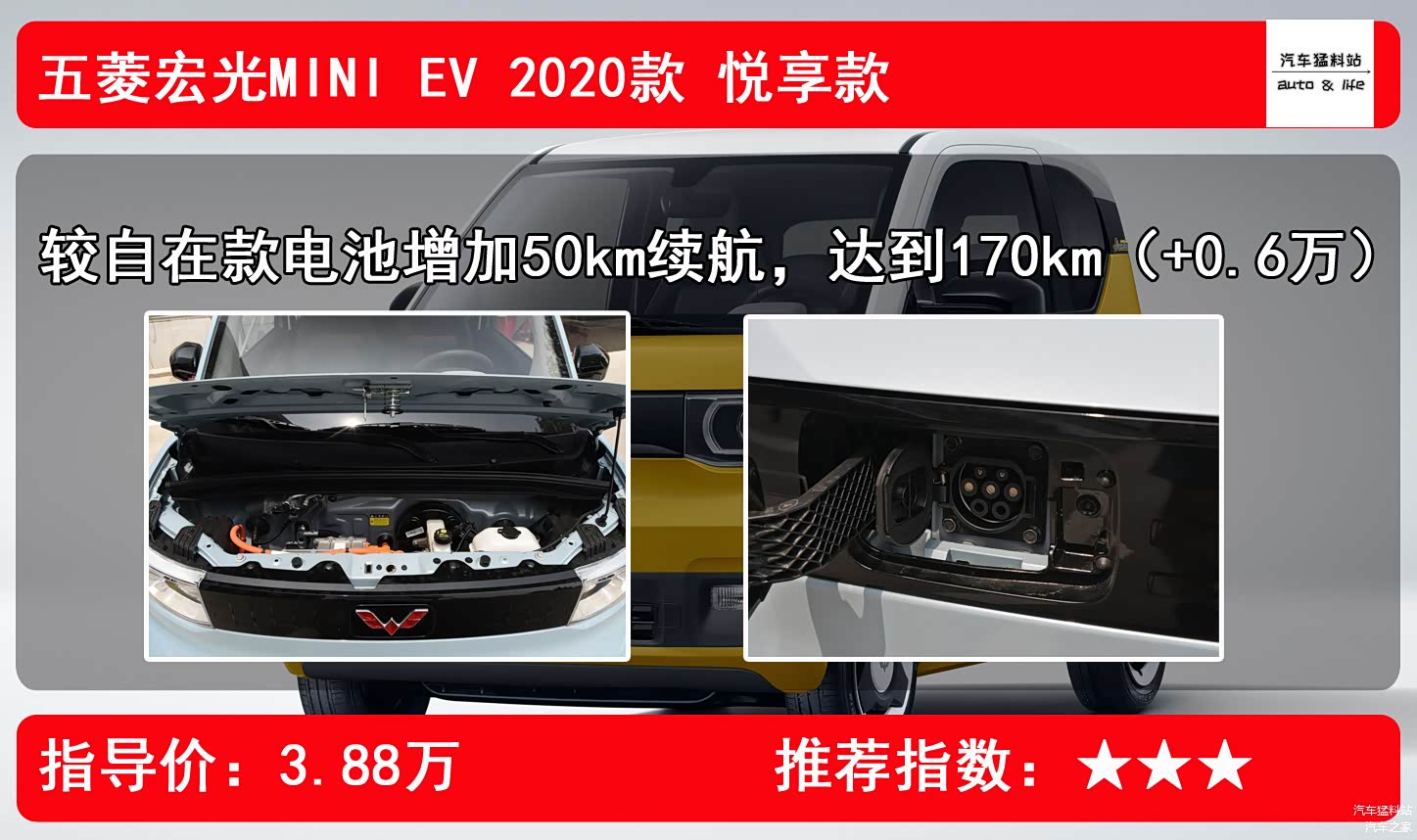 2020款 悦享款:比自在款贵6000元,贵的部分换来的是多50km的续航。续航能力更强自然是好事,但对于不会开着宏光MINI EV出远门的我们,多出来的50km续航,值不值得多花6000元,就需要仔细斟酌了。