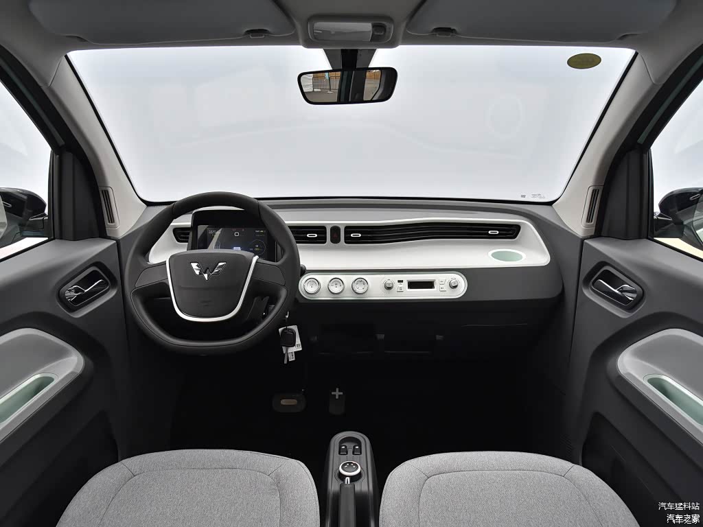 内饰方面,受限于成本下的用料虽然不高级,但双色混搭的设计以及流畅线条的运用还是带来了不错的时尚感。并且配备有彩色液晶仪表、手动空调及简单的收音机+USB功能。而在乘坐方面,宏光MINI EV为四座设计,但后排久坐难受,应急为宜。