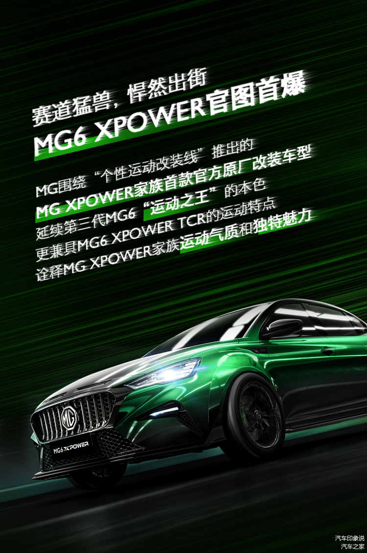 “赛道猛兽,合法出街”,MG6 XPOWER是MG围绕“个性运动改装线”推出的XPOWER家族首款量产车型,是专为热衷改装的年轻人打造的官方原厂改装车型,是可直接上牌合法出街的“赛道王者”。