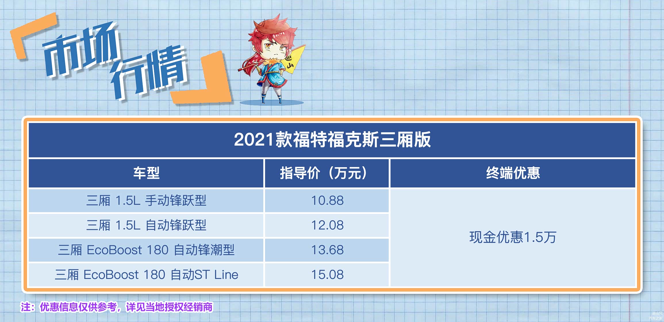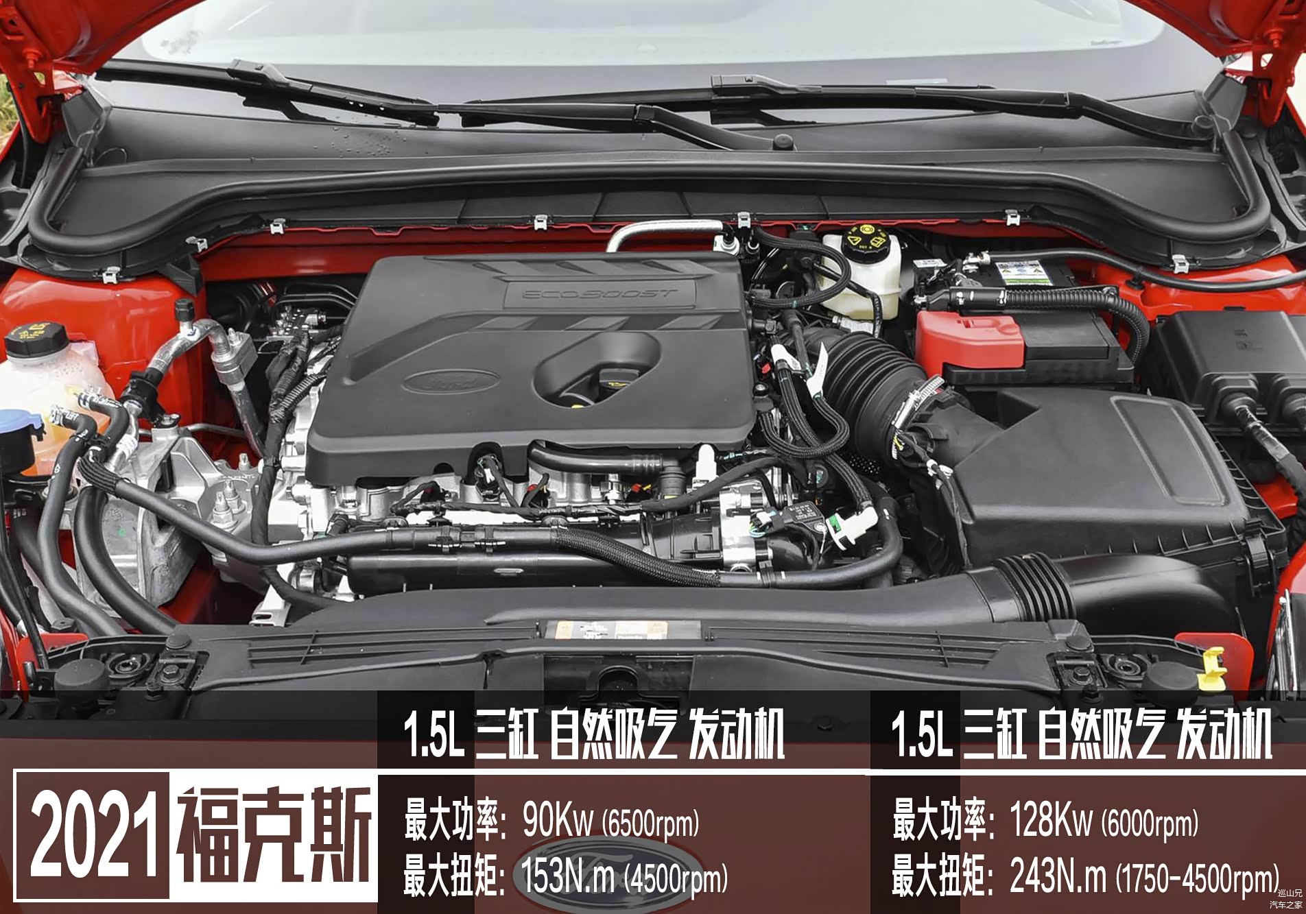 动力方面,2021款福克斯装备的是1.5L自吸和1.5T两款三缸发动机,最大功率分别为90kw和128kw,最大扭矩分别为153牛·米和243牛·米,传动系统1.5L自吸匹配6MT和6AT变速箱,1.5T匹配的是8AT变速箱,并且采用旋钮换挡。