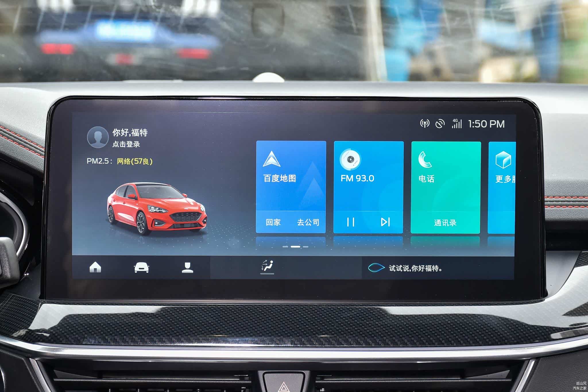 值得一提的是高配车型上还搭载了一块12.3英寸的触摸屏,采用最新的SYNC+智能互联车机系统,整个屏幕分辨率不错,系统UI设计和安卓手机类似,支持智能导航、在线生活服务、语音互动等功能,并且支持OTA升级。语音操作系统由“百度”提供,车主通过唤醒词“你好,福特”来激活系统,可以控制空调系统、导航以及天气查询、多媒体播放系统等。