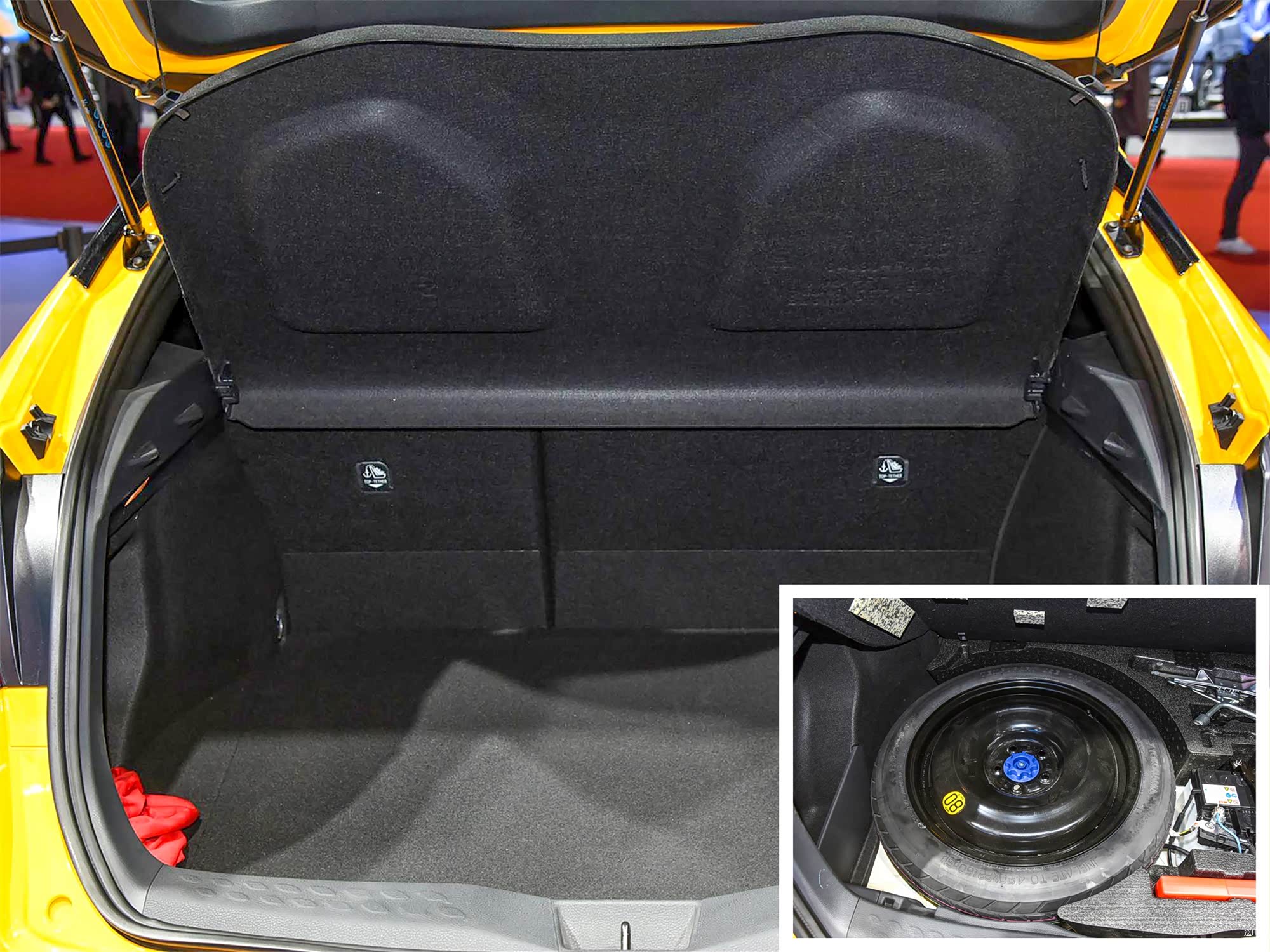 尾箱空间方面,C-HR双擎版和普通版差别并不大,总体来说比较平整,并且支持后排座椅比例放倒。在不放倒后排座椅的情况下,放置四人短途旅行的行李问题不大。并且值得一提的是混动版依旧提供一个非全尺寸备胎,这点在日常用车过程中非常方便。