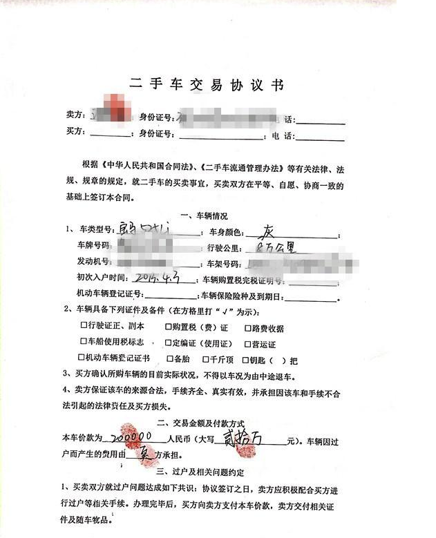 就是咱们买二手车时,一定要让卖方注明实际车辆现况在合同上(无重大事故骨架,泡水,火烧等等,机械没有隐患,发动机有故障呀,变速箱换挡机构,呀等等)把你能想到的都加上。切记不要任何口头上的承诺,必须体现在合同上。