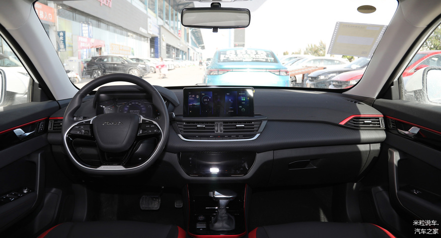 奕炫内饰设计的也是可圈可点。它采用了全黑的内饰,但是全黑中又夹杂着较多的红色线条,使得整车的运动感提升了。此外,奕炫在中控部分搭载了10.25英寸的触控大屏,并且还拥有七英寸的彩色行车屏幕。你以为这就是全部电子屏幕了吗?并不是的,奕炫的空调控制区采用的也是触摸屏幕,整个内饰设计由此变得非常的科技现代化。