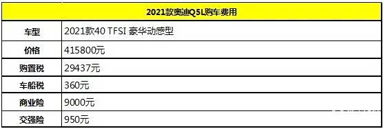 在购车层面,奥迪Q5L 2021款40 TFSI 豪华动感型全款的费用为455547元。