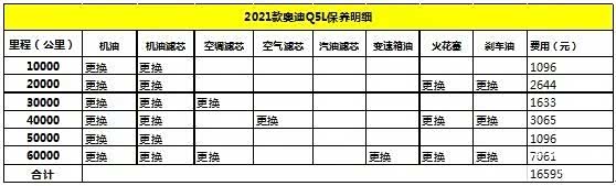 通过上表可以看出,2021款奥迪Q5L在10000公里和50000公里时,它的小保养费用预计为1096元,其实并不算便宜。