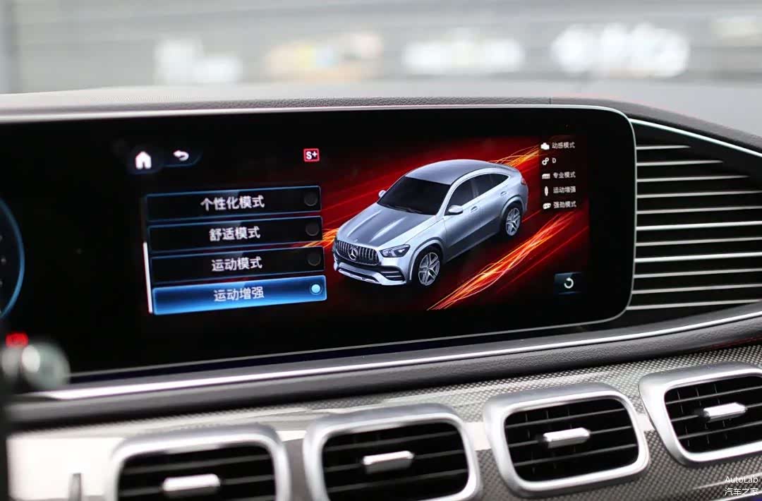 但AMG GLE 53的动力真的很猛,这副带48V电机的3.0T直列6缸引擎,完全不需要像普通GLE那样等一等,随便一脚油门下去就猛奔。而且AMG调校过的车加速感很强烈,让你感觉它比普通GLE 450快很多,但看数据百公里加速也就快了0.4秒。