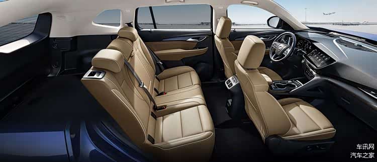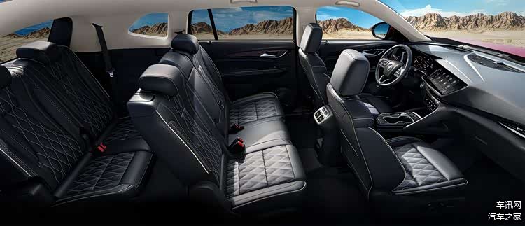 得益于超长轴距,昂科威Plus可以较为从容地设置两排五座和三排七座两种座椅布局形式。其中五座版后排头部及膝部空间尺寸分别达到988毫米与115毫米,官方宣称领先同级。而七座版采用2-3-2布局,三排座椅呈剧院式设计,前低后高,为每一排乘客都提供了良好的视野。其中第二排座椅不仅椅背角度可调,还可实现250毫米的纵向移动范围,保证了三排乘客的乘坐舒适性。