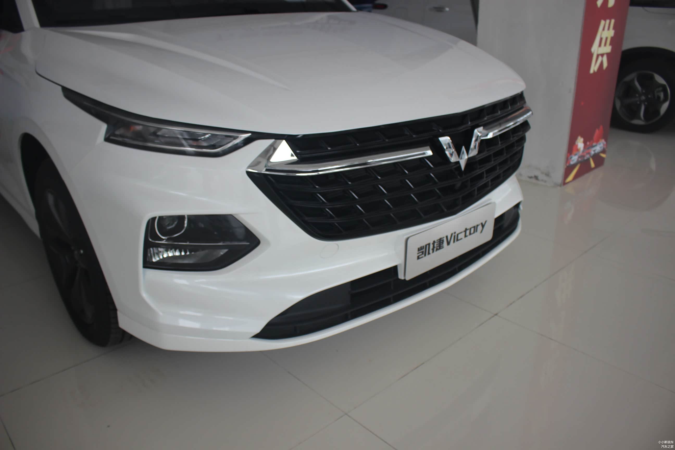 2020款五菱凯捷的外观设计的大气时尚,进气格栅的样式很宽大,中网上装饰了镀铬饰条来提升质感,前大灯组的样式很修长,并且保持一定角度的倾斜,呈现出一定的攻击性。机舱盖上的线条勾勒的很突出,力量感还是很不错的。雾灯区比较宽大,并且采用了凹陷式的处理,立体感很强,雾灯的内透镜是点阵式设计,点亮之后的辨识度很高,中间的进气口是梯形的样式,镂空样式的中网很高级,前保险杠很扎实。