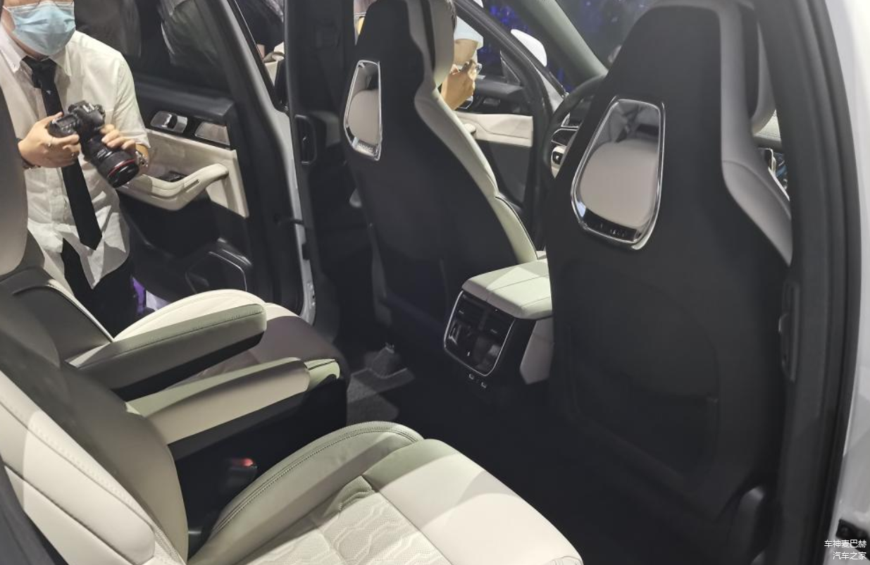 后排空间非常大,座椅采用NAPPA真皮材质,非常豪华,车内具有12+6英寸中控屏幕、12.8英寸的全彩HUD显示屏、12.3英寸的全液晶仪表和两个1.4英寸的旋钮屏幕,后排是分体式座椅。