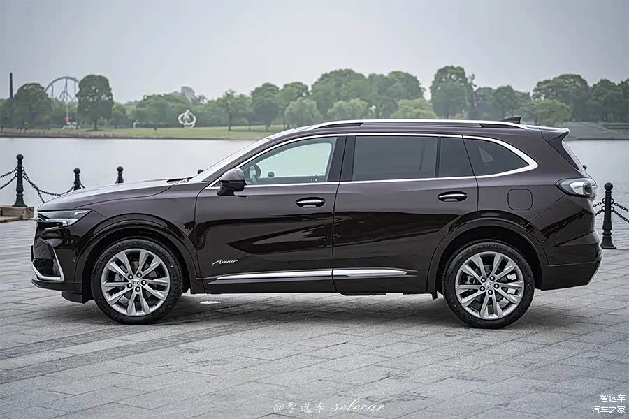 侧面,昂科威Plus延续了别克家族一贯的沉稳大气风格,略显方正的造型搭配上修长的车身,令整车看上去更显豪华,颇具档次感。车身尺寸方面,新车的长宽高分别为4845/1883/1695(1705)mm,轴距为2833mm,较大的尺寸为其打造7座版本打下了基础,也让5座版本有着更佳的空间表现。此外,在顶配艾维亚版本上,新车还采用专属的梅洛酒红色涂装,并在前翼子板后镶嵌有“Avenir”徽标,用以彰显其车型身份。