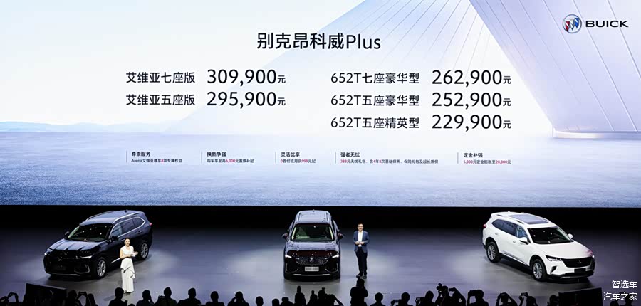 全新别克昂科威Plus共推出5款车型,分别为2021款 652T 五座精英型 、2021款 652T 五座豪华型、2021款 652T 七座豪华型 、2021款 Avenir艾维亚 五座版、2021款 Avenir艾维亚 七座版,厂商指导价分别为22.99万元、25.29万元、26.29万元、29.59万元、30.99万元。下面就由小智来为大家分析一下哪款车型最值得购买。