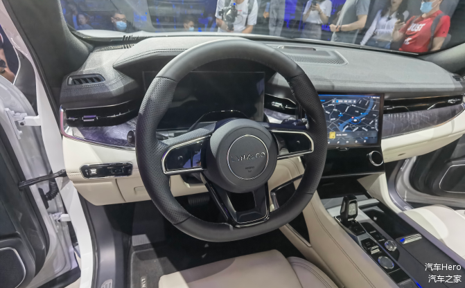 内饰方面,新车也采用了领克品牌家族式设计风格,整体的科技感还是非常不错的。新车采用了全液晶仪表盘和大尺寸中控屏设计,且空调控制面板也采用了一款液晶显示器,并与上方的中控屏相连,整体的视觉效果非常不错。