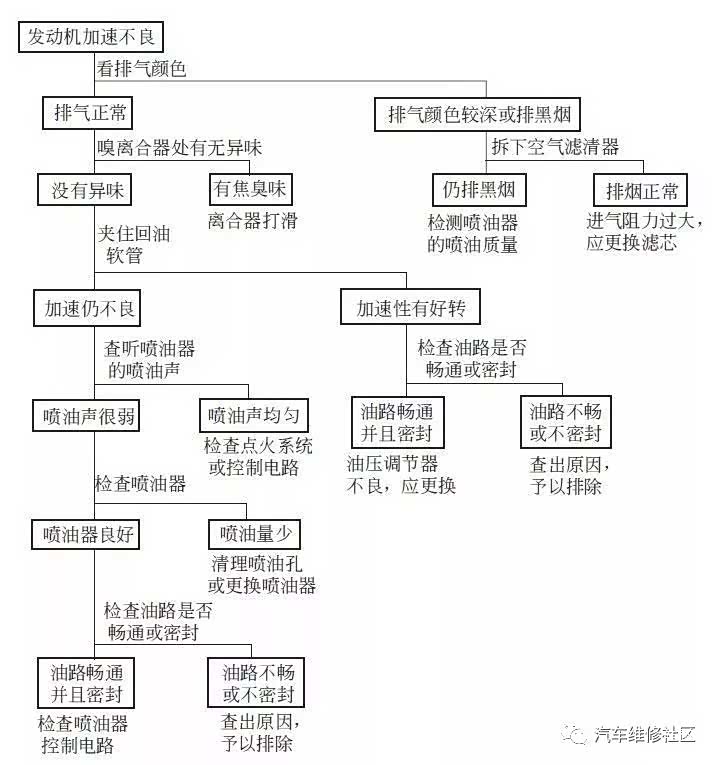 电喷发动机加速不良的检查流程图 ▼
