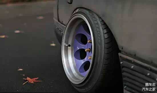 悬挂采用了可调的形式让车辆可以尽可能低的贴近地面。轮毂使用了Thompson Classic II,尺寸为16×10J,与之匹配的是在日本漂移界中最为出名的Pinso轮胎,这是日本漂移车迷们的首选。车轮采用大角度的负外倾设定,一来保证稳定性,二来是优化了整车的视觉。