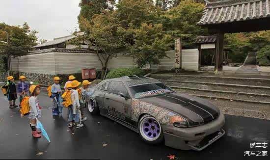 车主把外景地选择在了日本京都郊外的一休古寺,在这里末日战车般的S14吸引了一群小朋友们的围观,或许在他们眼里这就是真正的末日战车。