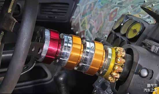 为了满足漂移的需要,方向盘转向柱上增加了四个转接来让方向盘竟可能多的贴近驾驶者,而这些细节也被里美一番精心的修饰。