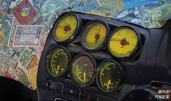看完了外观后来看看它的内饰,当挡风玻璃和车窗都关闭的时候这里成为了一个黑暗的整体。作为一辆改装车,座椅来自Recaro,中控台上则布满了贴花。