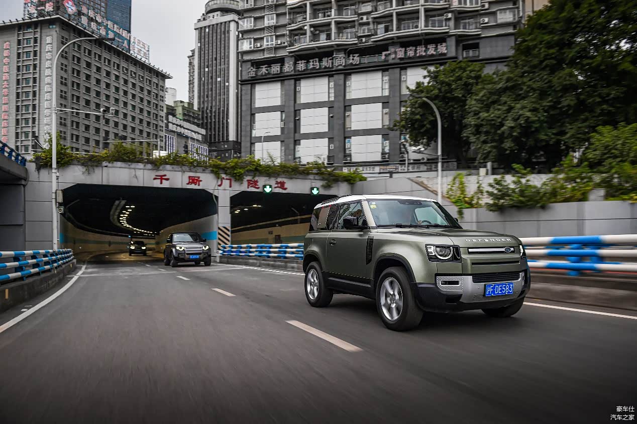 90在城市道路上的表现完全没有问题。在重庆这样的魔幻山城,因为身形更加紧凑,所以开起来更加得心应手。底盘质感和操控方面也都没有什么明显的短板。硬是要挑毛病的话,就是在快速通过减速带的时候,较短的轴距会让后轴产生较为明显横向跳动。另外,在通过隧道的时候,帆布制成的可折叠半硬顶确实会有比较大的噪音。这些都是无法避免的,鱼和熊掌嘛。