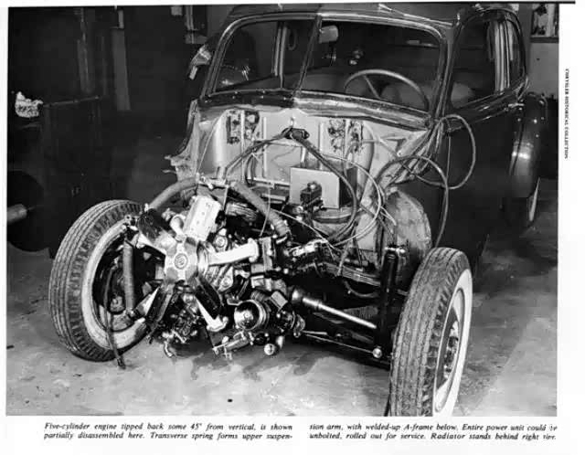 是不是以为不说车了?在美国的经济危机时期,汽车三巨头都认为廉价小车是最好的出路。其中克莱斯勒就秘密建造了两台装备5缸水冷星型发动机的原型车,并驾驶他们通过了总计超过20万英里的测试。