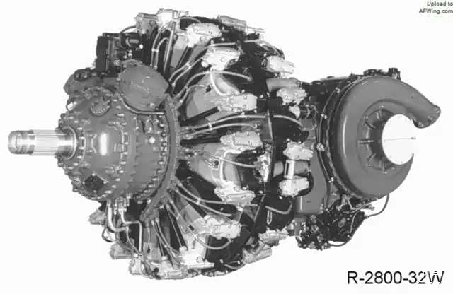 这种发动机在航空史上占有特殊的地位。甚至有的航空史书上说,如果没有R-2800发动机,在第二次世界大战中盟国的取胜要困难得多。后者有四排28个汽缸,排量为71.5L,功率为2200~3000kW。(附上机枪是如何穿过螺旋桨的动图)