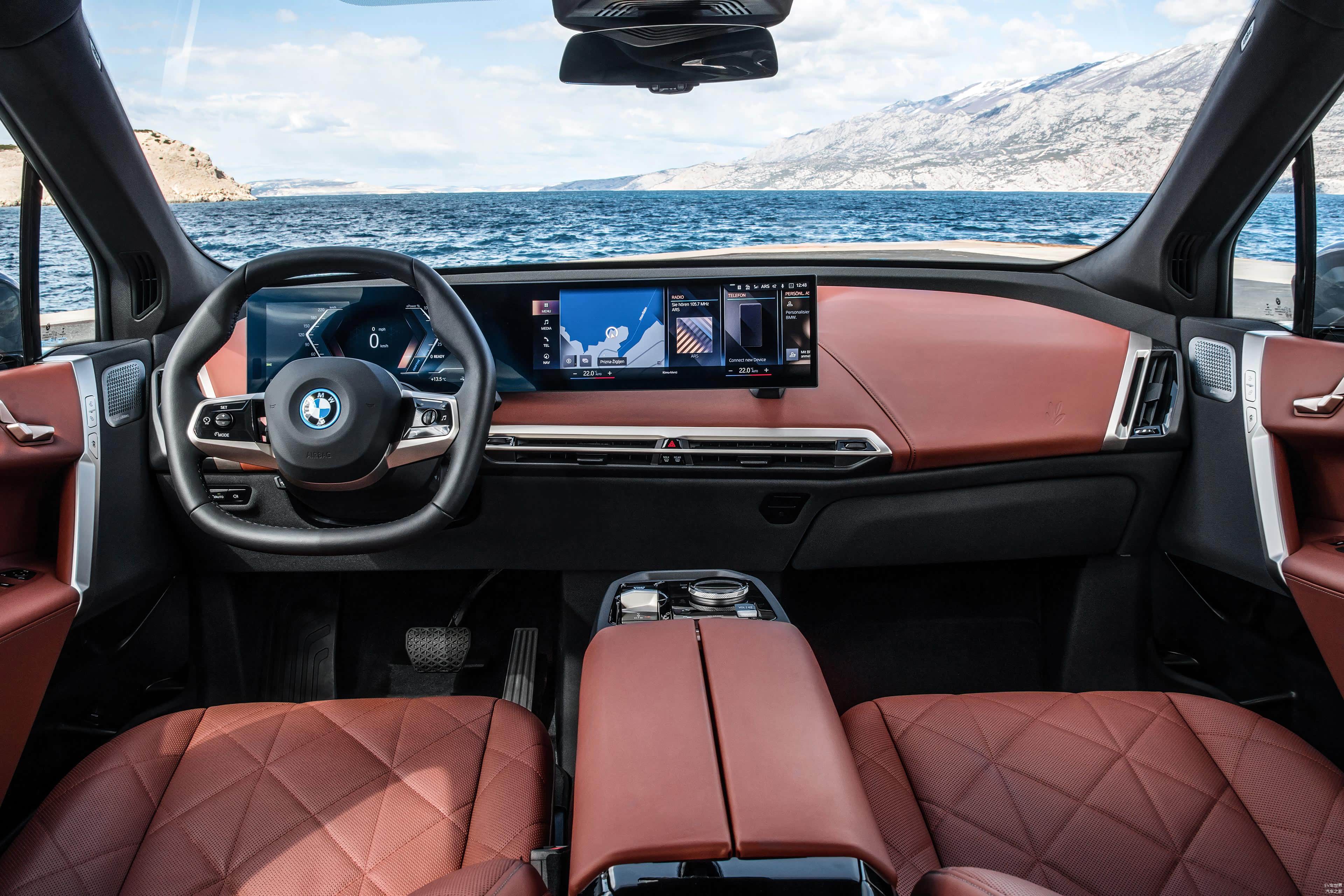 新车的内饰采用了宝马最新设计风格,显得更加简约和科技智能。12.3英寸全液晶仪表盘和14.9英寸悬浮式中控屏采用一体式曲面屏设计,搭载了宝马最新的iDrive 8.0系统,可以通过语音 、触控等更直接的方式进行操作。