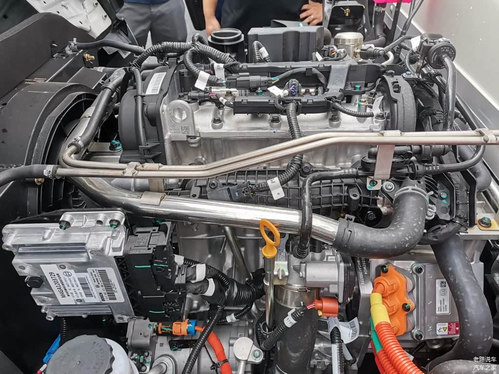 远程GLR增程式轻卡配装的发动机为沃尔沃1.5T涡轮增压汽油发动机。发动机满足国六排放,节能高效,被多款乘用车应用,是一款市场口碑不错的动力产品。有必要说明一下的是,发动机虽然安装在车架前端,但它并不参与车辆驱动,增程式轻卡设计只是电机驱动,发动机只有在需要充电时运转,为动力电池充电。如此一来,将纯电车型的停车充电改为边跑边充,从而达到增加续航的目的。