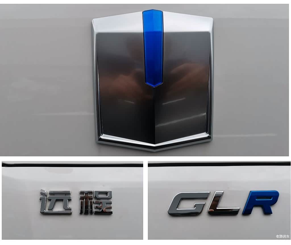 挡风玻璃与进气格栅之间的空白处分别被“远程、LOGO、GLR”简单点缀,增加了车辆的识别度,使整个前脸看上去和谐美观,不突兀。