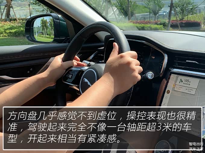 捷豹XFL转向阻尼调教得十分轻盈,对于这样一款车长超五米的中大型轿车来说,这样的标定能够让你操控自如,更加灵活轻巧的穿梭于城市之中。调整到运动模式后,转向随速随角度线性增益明显,给人营造出非常紧致的驾驶质感。
