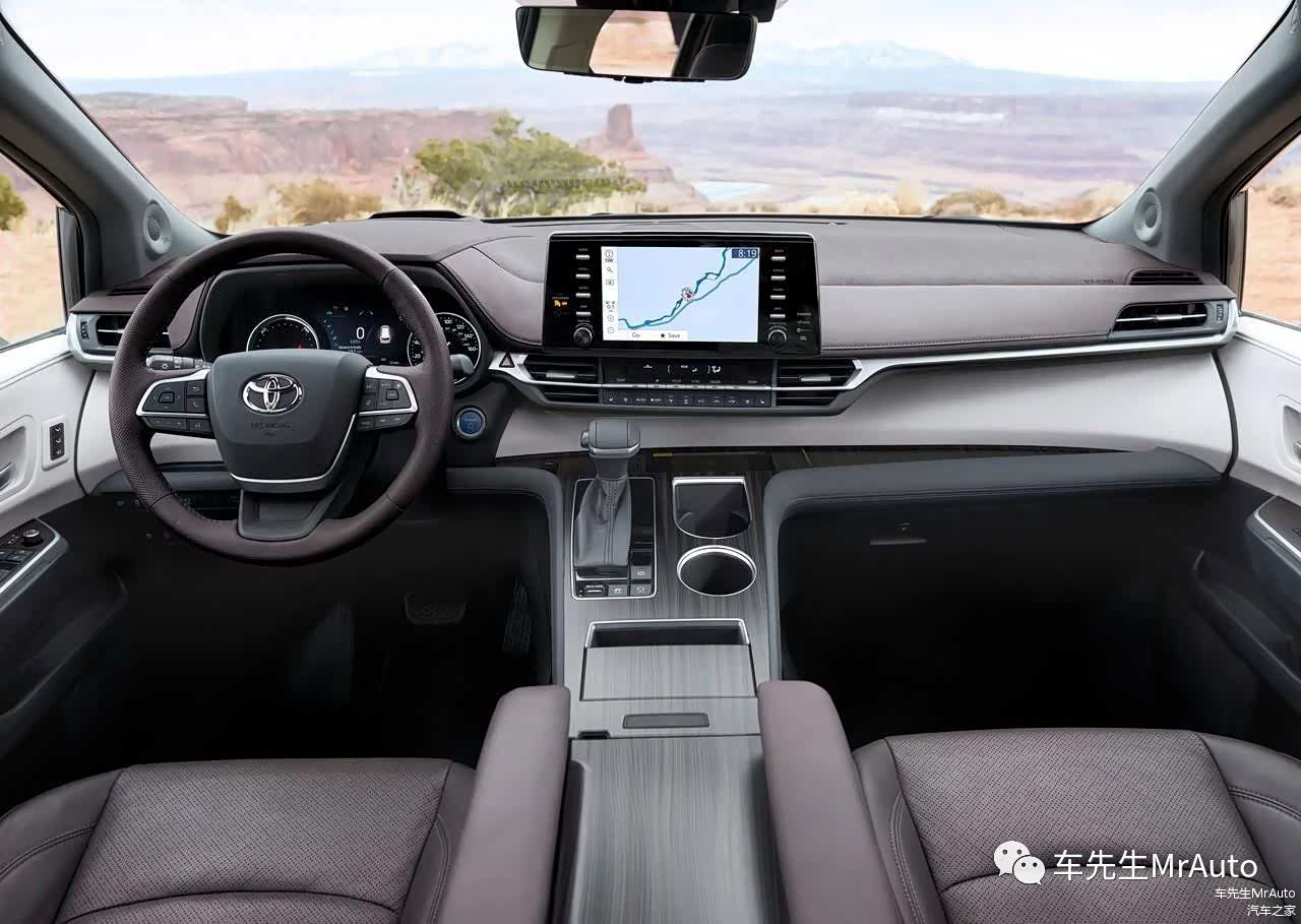 内部部分,广汽丰田赛那的设计非常简洁。美规原版第四代Sienna在T字型中控台的后方布置有车载吸尘器和冰箱,非常的方便。不知道国产版的赛那是否会跟进这一配置。其它配置上,赛那的车内屏幕预计和美规车型一样,采用7英寸行车电脑显示屏+传统机械仪表的组合;中控屏的尺寸为9英寸,支持苹果Carplay和安卓Auto手机互联功能。