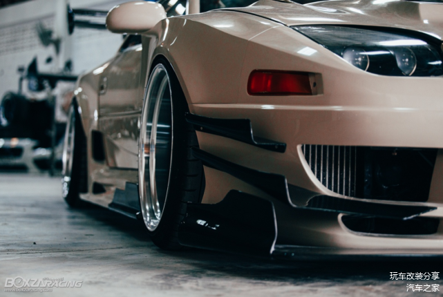 图:这种跑车根本不用考虑太多Low低啊之类的话题,本身就已经是扁长造型,把轮子换大几寸,就能轻易的让轮拱充实饱满。