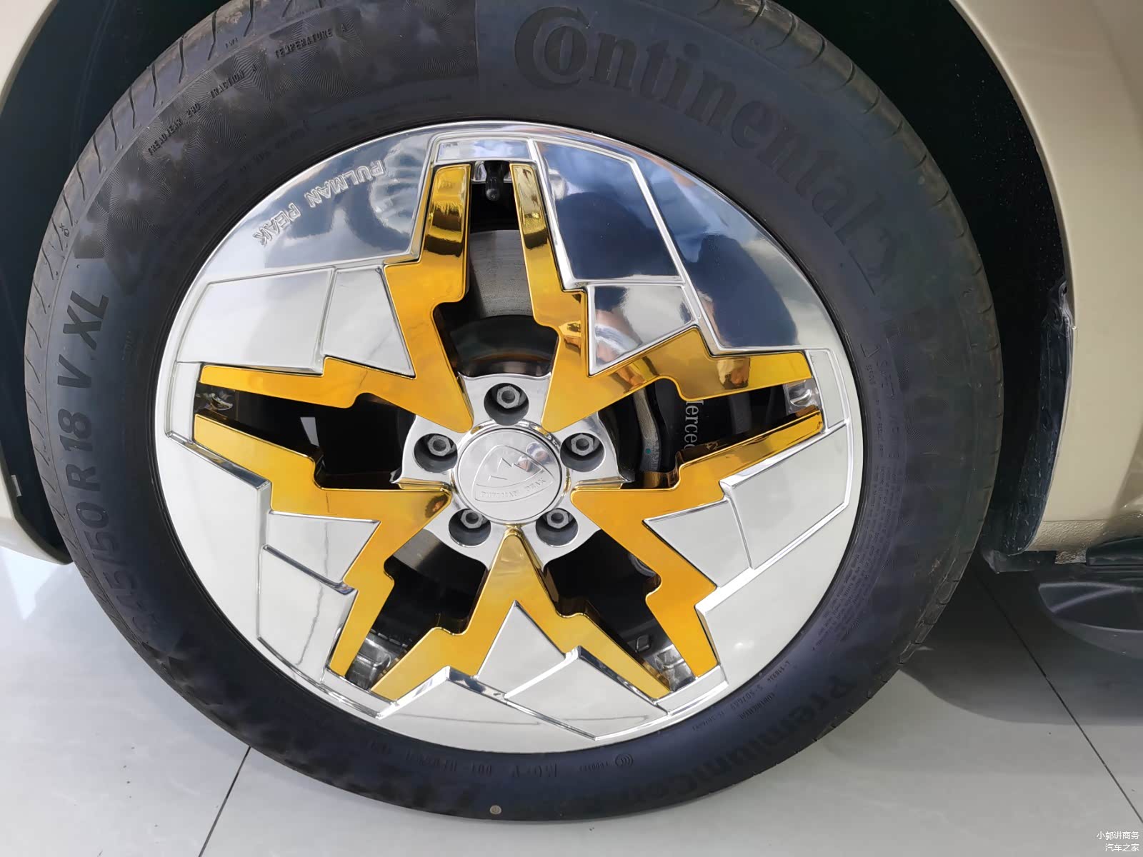 普曼·巅峰版的车头造型采用了直瀑式前脸造型,辅以碳纤维空气动力学套件,整车外观庄重大气。而最吸引眼球的是这款车的轮毂,AMG经典轮毂造型与冈仁波齐山峰的完美结合,真的是恰到好处。