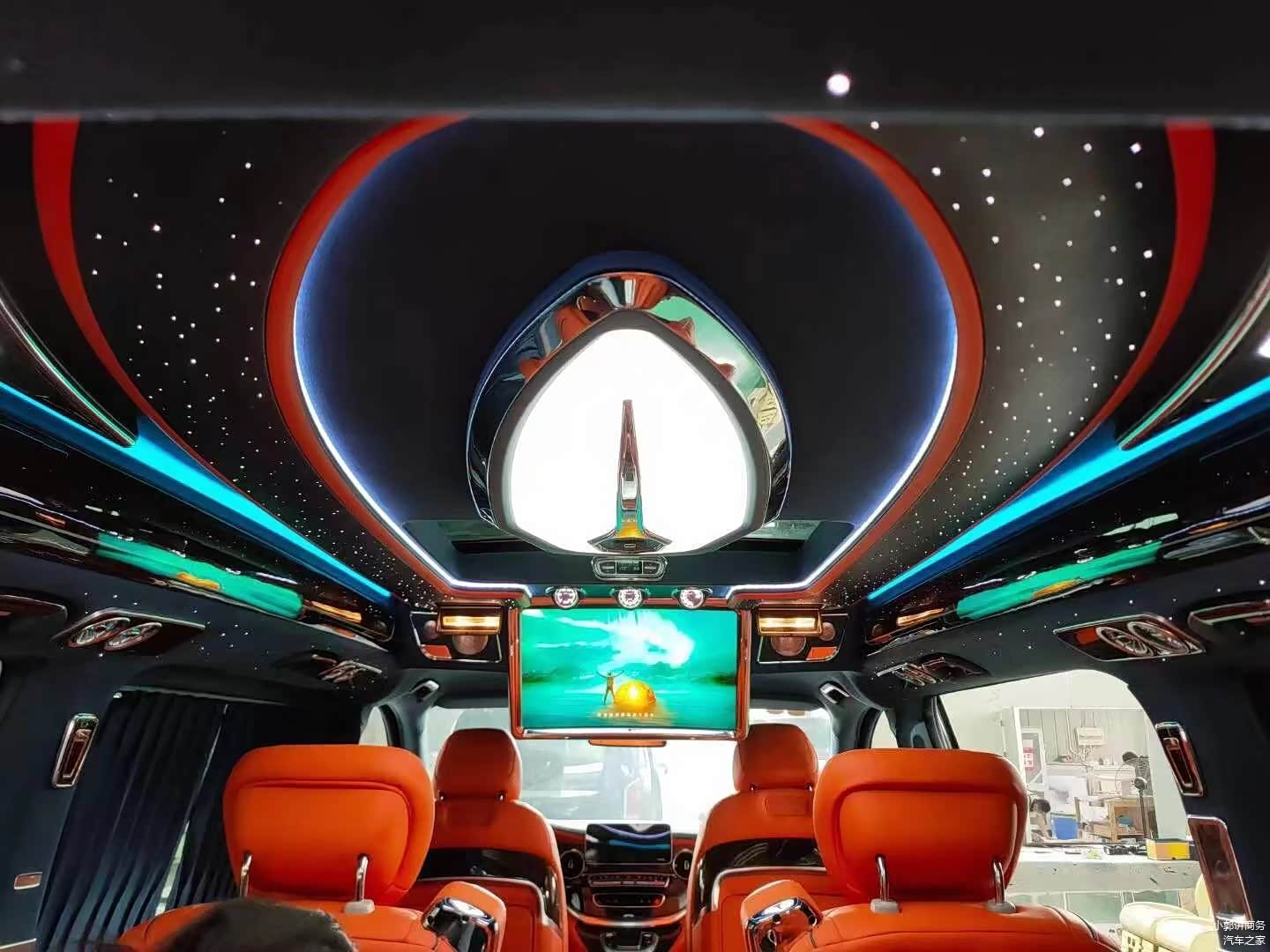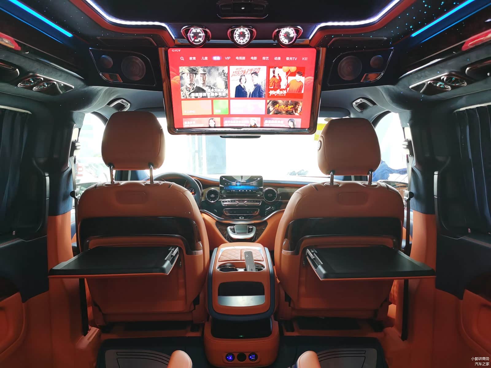 璀璨的星空顶和氛围灯带,车内氛围一级棒。了解更多商务车咨询请关注公众号:小郭讲商务
