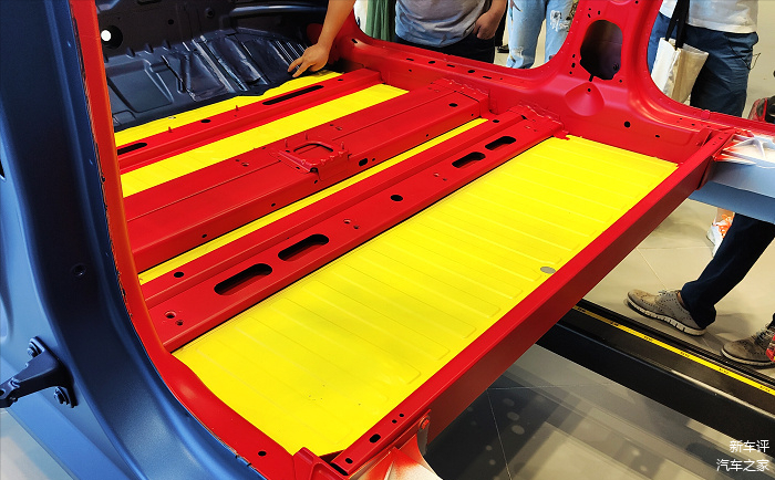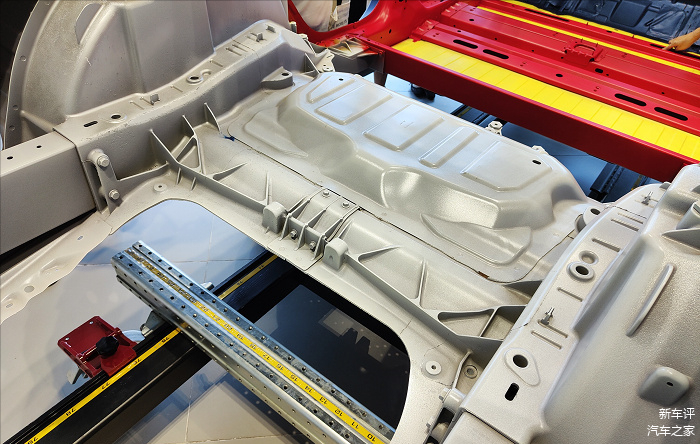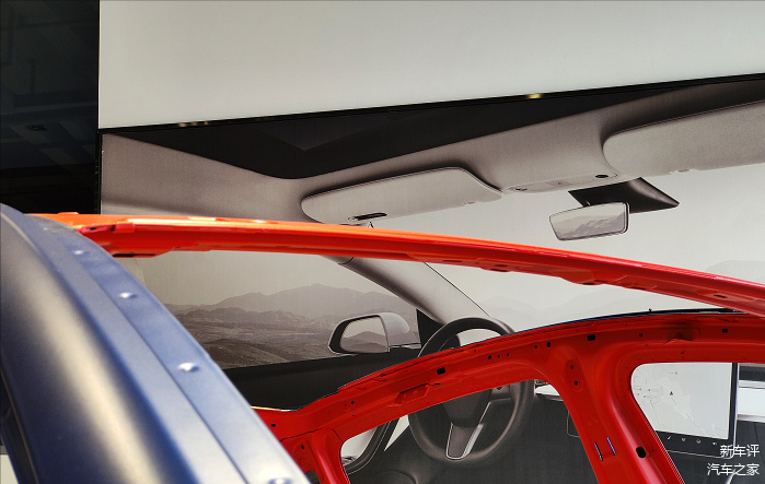 在车底这个部分,这次特斯拉还解了我一个长期的疑惑。我在今年年初第一次试驾Model Y时,发现这个车看起来比Model 3要大了很多,但它的车身重量却只比Model 3重了不到200kg,我觉得这是很奇怪的,毕竟特斯拉说两者是“共享大量部件的”,怎么Model Y的轻量化能做得这么好呢?。这回看到Model Y的白车身,我们才知道,原来Model Y的这块后底板是铝制一体成型的,而Model 3上的是几块部件拼接而成的。Model Y这个制造工艺的提升,不仅大大节约了生产工序和生产成本,更是在这一个部件上就偷轻很多,最终达成的效果就是只比Model 3重了100多公斤。
