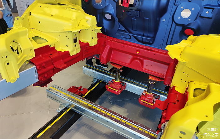 这些部位一般都是车身在碰撞时最“吃力”的部分,所以都必须用上(大于等于1300MPA的)超高强度钢,例如车身顶部这两个横梁和车顶框架。现在很多车都流行做全景天窗,其实全景天窗这个东西成本没多高,你要在用全景天窗之余,去提升车身的强度、研究碰撞受力点、保证车身的安全性,这才是最花钱的。我之前探访过几个自主品牌的工厂,管中窥豹地看过现在的车身安全设计和碰撞测试是怎么烧钱的,后来也明白了拿着10亿就想造车实在是太天真。