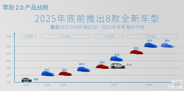 更为重要的是,零跑将在2025年底前推出8款全新车型(A01、A11、A12、C01、C12、D01、D11和D21),轴距覆盖2600-3100mm。