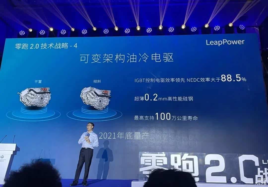 在动力总成上,零跑表示将于2021年底量产可变架构油冷电驱,官方称其IGBT控制电驱的NEDC效率大于88.5%,且其最高支持100万公里寿命。
