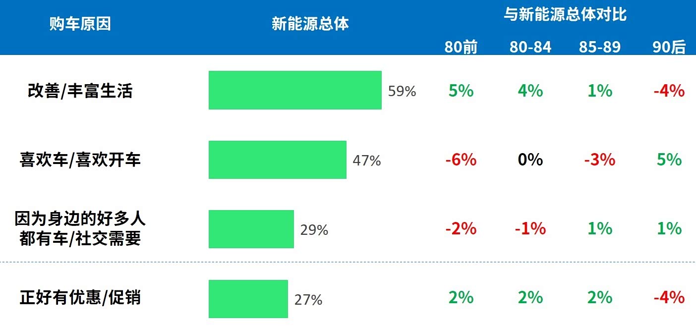 消费者购买新能源车往往是出于这三个动机:“改善生活”、“喜欢开车”和“社交需要”。