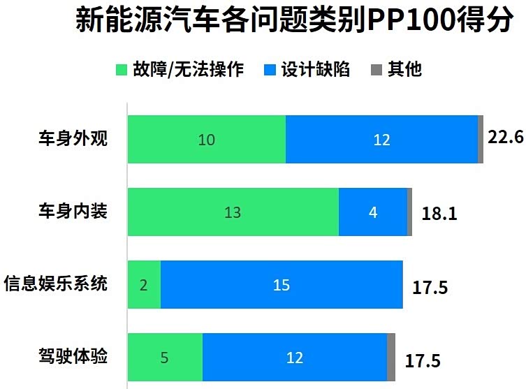 根据20年中国新能源汽车体验的研究数据可知:纯电动车型的总体新车质量表现低于新能源汽车行业平均水平。其中,小型和紧凑型纯电动是“拖后腿”的两种车型。