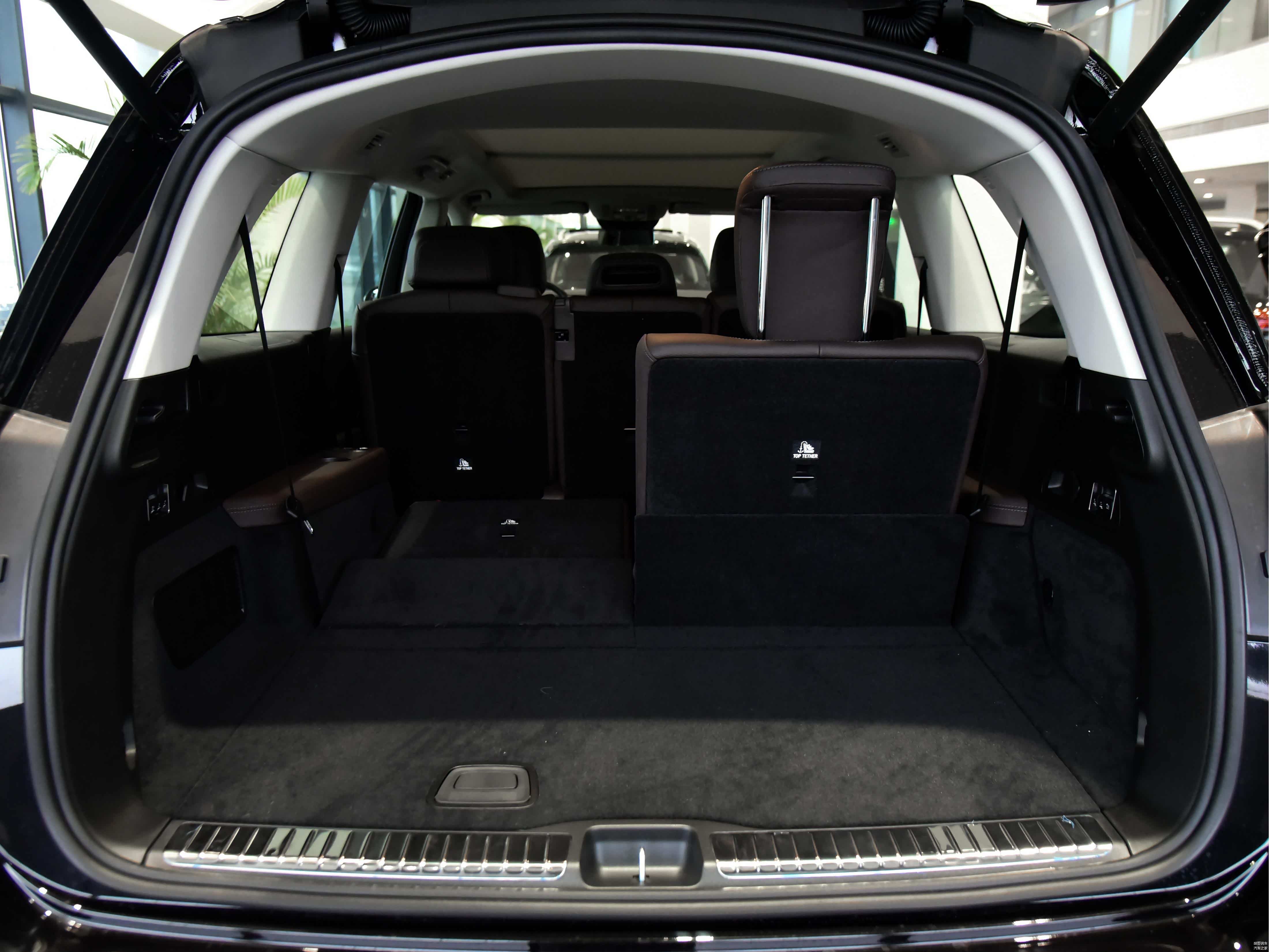 奔驰GLS后备厢表现还可以,开口大且内部规整,后排座椅放倒后能扩展出一个更大的空间,能很好的满足用户的储物需求。
