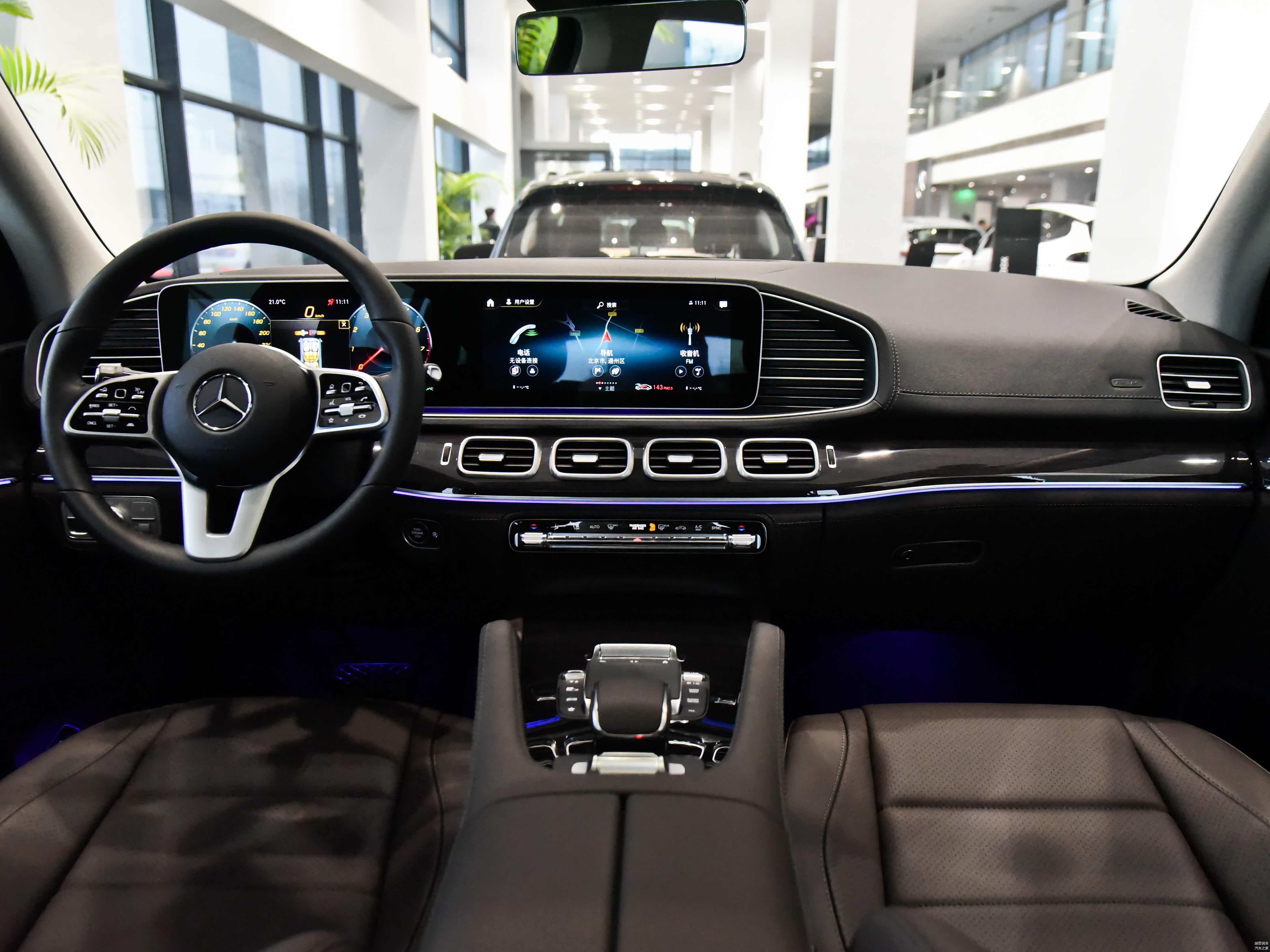 坐进车里,奔驰GLS内饰以黑色以及棕色为主,视觉效果不错,标配胎压显示、前/后驻车雷达、刹车辅助等多项配置,能给驾乘者带来极大的便利。