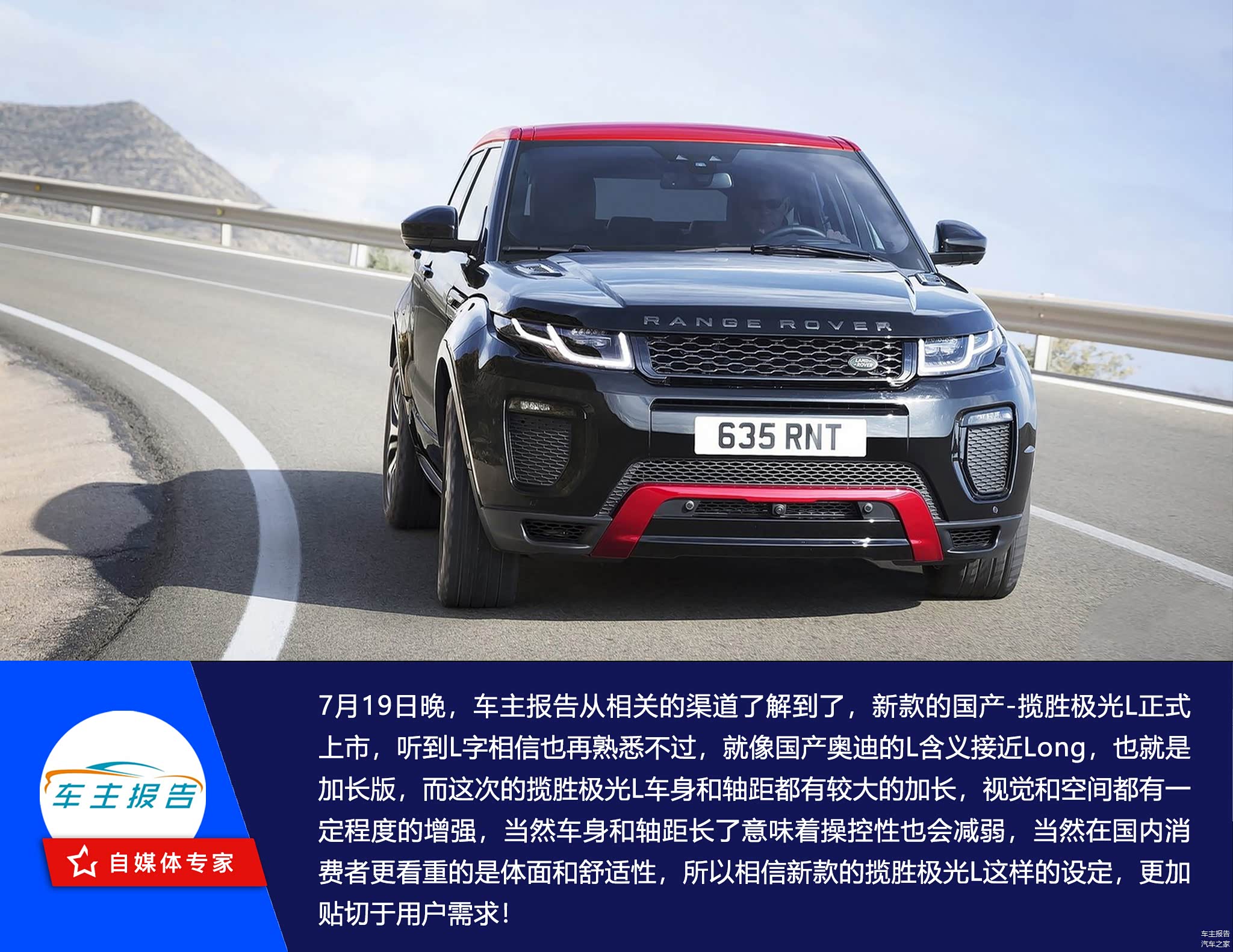 7月19日晚,车主报告从相关的渠道了解到了,新款的国产- 揽胜极光(图片 | 参数 | 询价)L正式上市,听到L字相信也再熟悉不过,就像国产奥迪的L含义接近Long,也就是加长版,而这次的揽胜极光L车身和轴距都有较大的加长,视觉和空间都有一定程度的增强,当然车身和轴距长了意味着操控性也会减弱,当然在国内消费者更看重的是体面和舒适性,所以相信新款的揽胜极光L这样的设定,更加贴切于用户需求!