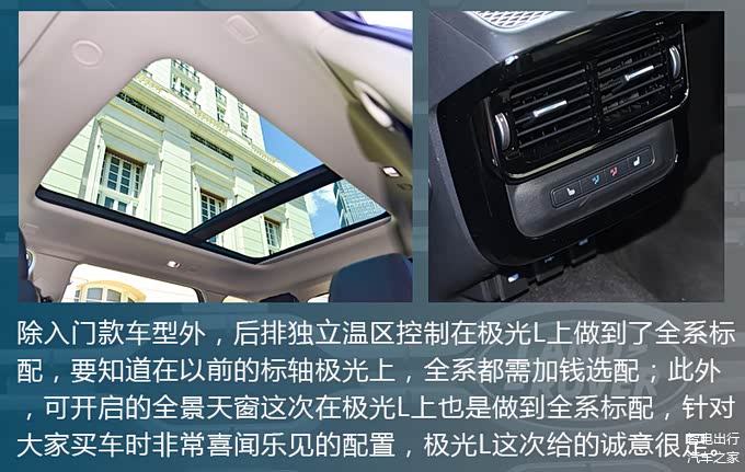 总的来说,标轴极光上的驾乘特性在这台极光L上依旧得到了保留,没有因为车身加长而影响它的操控灵活度,它依旧是这个级别最灵巧的选手之一。动力方面,满足日常依旧是足足够够,但对于追求速度的朋友来说,爆发感不算强;转向手感上有提升,细腻且女性驾驶员操作起来也会觉得轻松;在后排乘坐时,在面对一些颠簸路段,传递到车厢内的振感相较以往有所减轻,但还可以更加舒适一些。