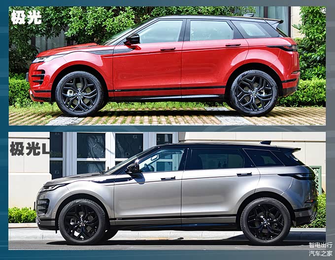 对于路虎车型不是很了解的朋友,从侧面还是很难一眼区分出标轴和长轴车型,从数据上来看,极光L所加长的160mm全部被用在了B柱往后的位置,此时后门在视觉上是要比前门更长,和极光正好反了过来。当然,C柱上的L小铭牌是能最快区分的标识。