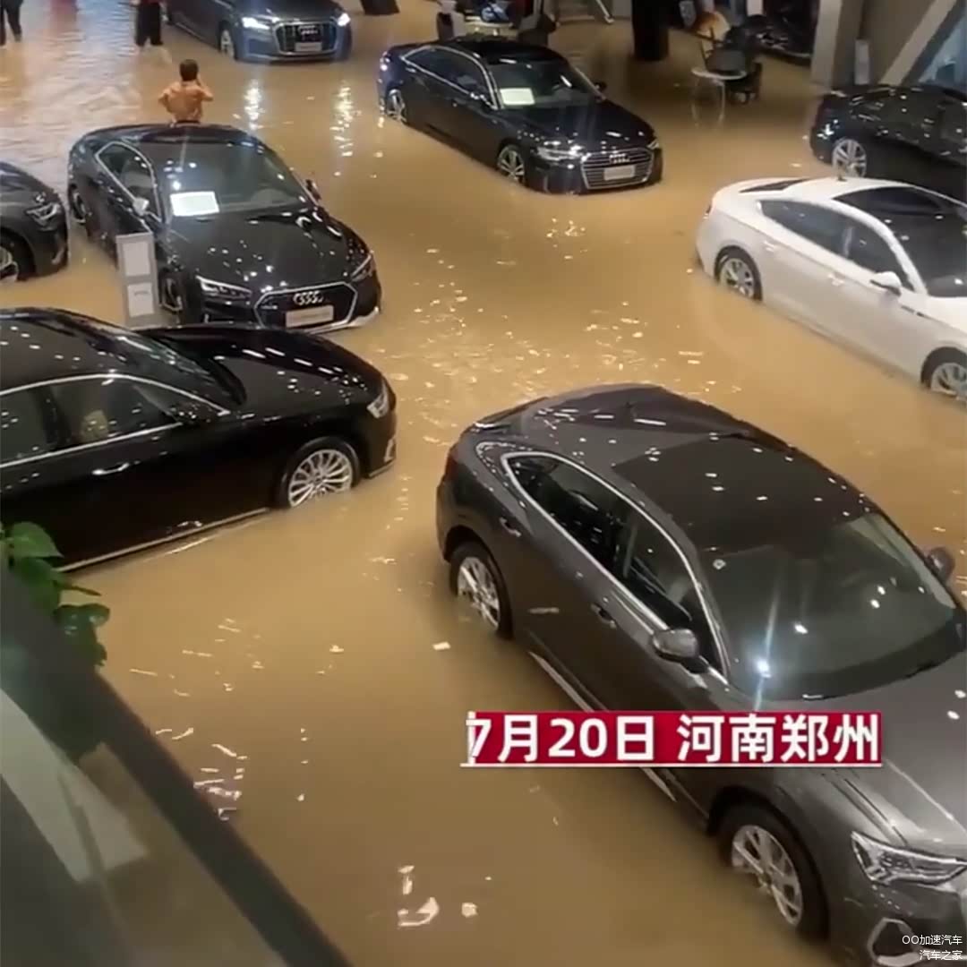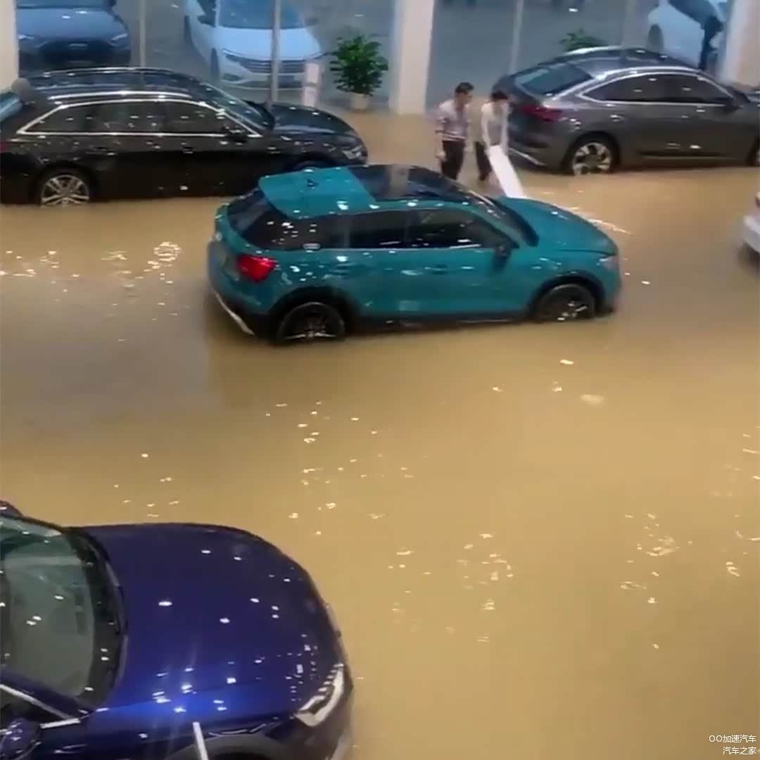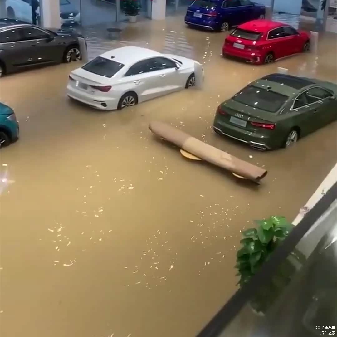 在郑州这场暴雨来袭中,若说损失较大的也莫过于汽车销售商了,这不在网上曝光的一段视频中,郑州一豪华奥迪4S店就深受其害。从网上曝光的这段视频可以看出,画面中有多辆崭新的奥迪新车遭遇雨水的浸泡,而旁人也只能静悄悄地等待雨水消退,这幅画面让人看着都是心疼啊!面对奥迪新车被雨水浸泡的场景,有人也表示为何不将新车挪个地方呢?其实正是由于奥迪新车在雨水中浸泡的原因,4S店人员并不是不愿意去挪车,而是为了将车辆泡水的损伤程度降到最低。试想若将雨水浸泡中的新车挪走,车辆或将面临着巨大的安全隐患。