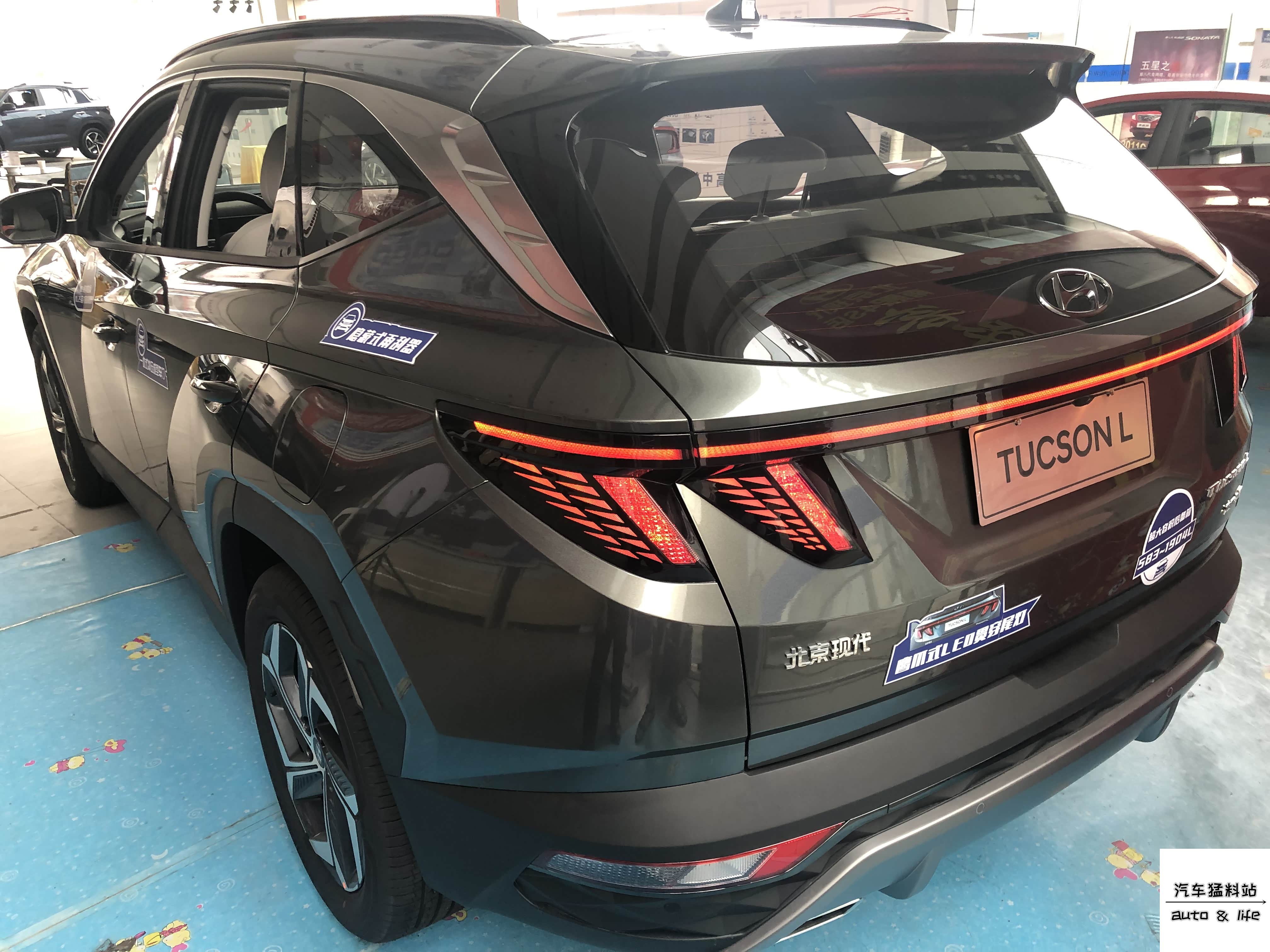 车尾部分,第五代途胜L出彩的地方无疑是贯穿式尾灯,以及其延伸出来的爪痕造型,点亮后的质感相当出色,并且下方的梯形后包围以及附近的类型棱状装饰等,都比较突显个性;而新一代奇骏的尾灯则相对平和,不过LED光源的配备也让其点亮后的视觉效果不错。