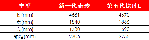 车身尺寸方面,第五代途胜L的2755mm轴距无疑是亮点,而其他方面则互有领先,新一代奇骏的车长和车高要更有优势一些。