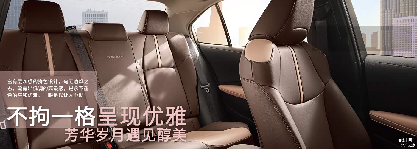 2021款卡罗拉的内饰为迎合女性审美也做出改变。其中,1.5L精英CARE版采用与卡布奇诺双拼色合成皮座椅搭配的内饰,时尚动感。全系各级别车型分别搭载了8/9/12.1英寸多功智能大屏,科技感和实用性兼备。目前,卡罗拉全系还标配了10项主动安全配置,有车身稳定系统、上坡辅助、胎压监测等等功能。而丰田最新的智行互联系统,已经可以实现卫星导航、WeLink以及微信社交等等功能,实用性比以前有了很大的提升。